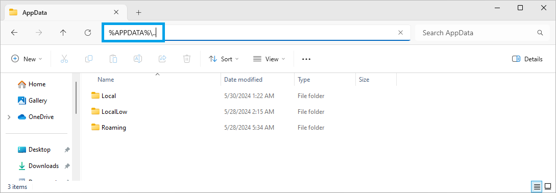 A quick way of accessing it is to enter %AppData%\.. in the address